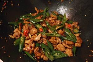 不用洗锅,锅里放一点儿清油,锅烧热后下入青椒