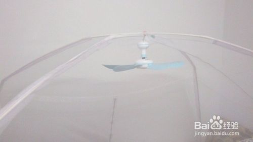 安装蚊帐:按说明书装好蚊帐。注意:记得反过来装(蚊帐支架装在蚊帐里面,这样好挂吊扇)