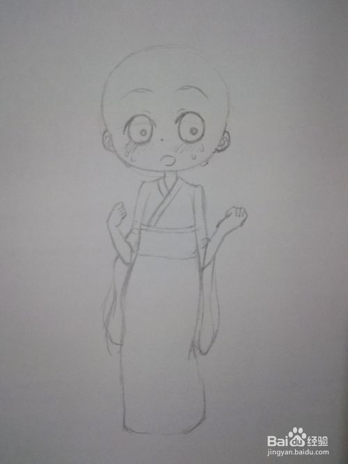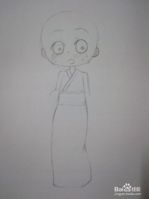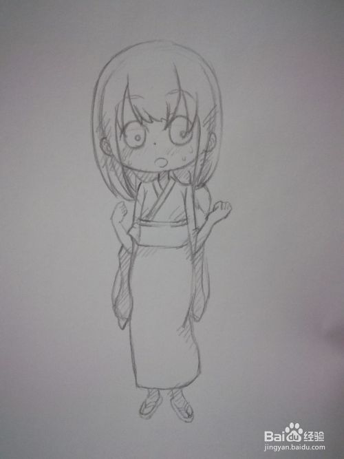 轻轻地勾勒出和服上面部分。