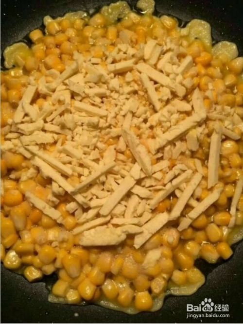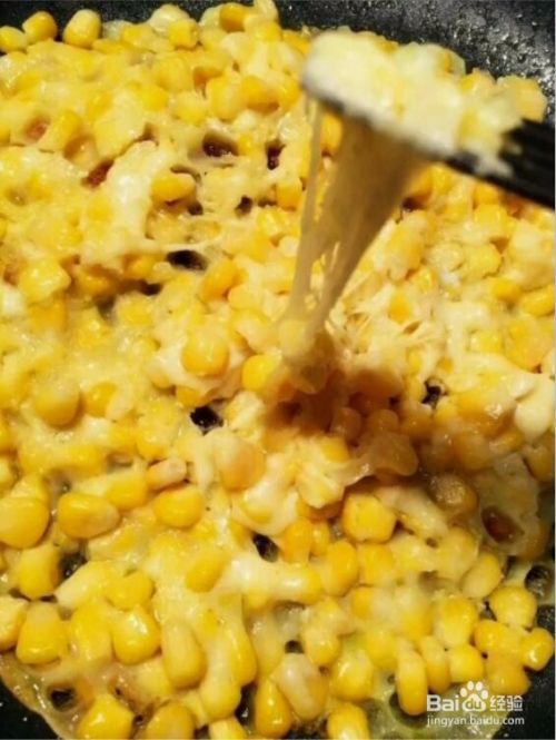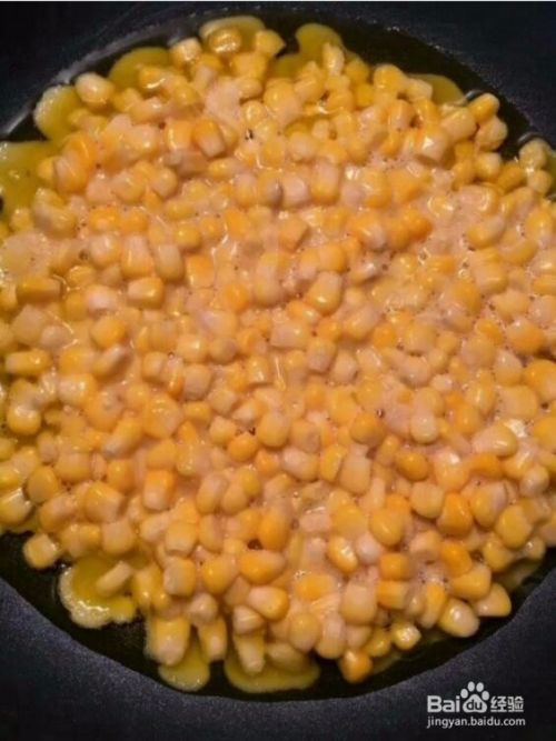 然后把刚才搅拌好的玉米均匀的倒入锅中。