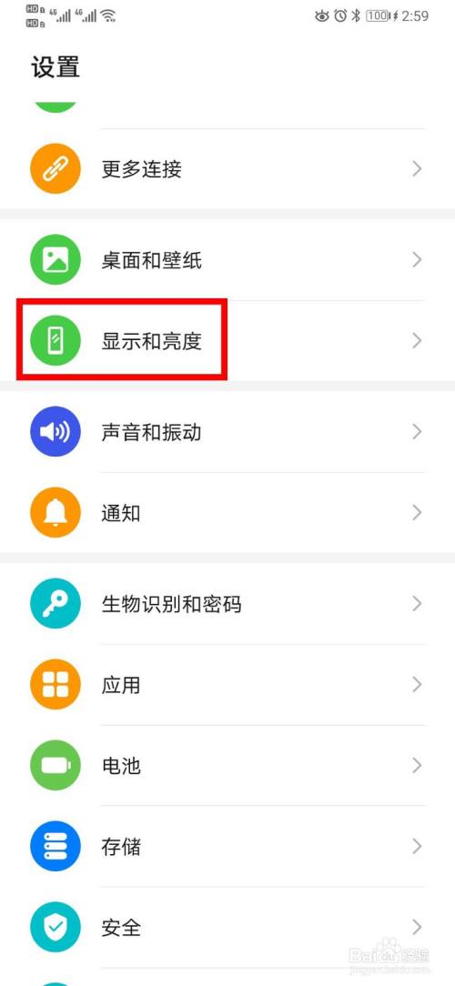 手机界面下滑,找到并点击【显示和亮度】选项,进入【显示和亮度】界面