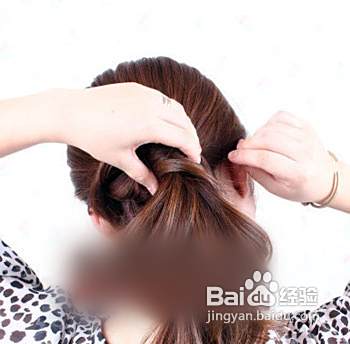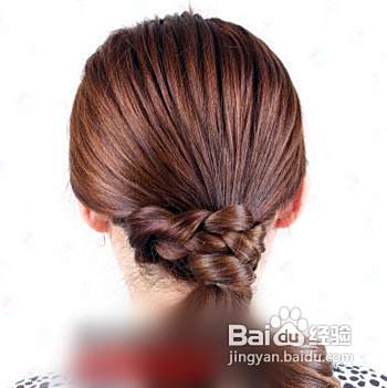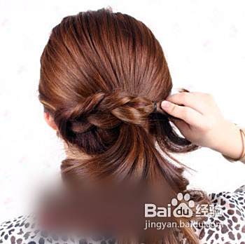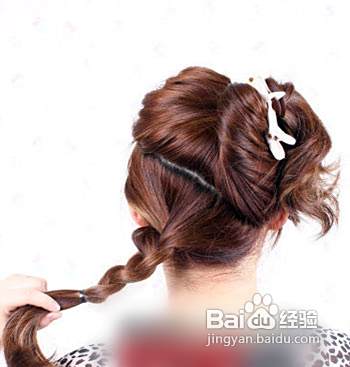 绕麻花辫:把麻花辫围绕马尾一圈,最好能把皮筋遮盖好。