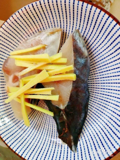冰鲜马鲛鱼无需解冻洗净放入盘中,上面撒上姜丝