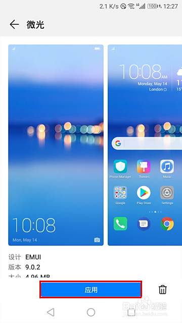 这时,将会打开指定主题的详情页。在详情页中点击底部的“应用”。