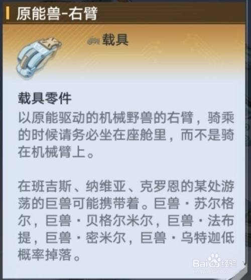 材料二、右臂:打地图上的小boss巨兽概率掉落
