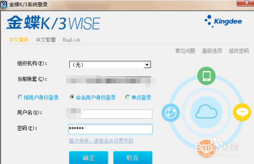 打开金蝶K3软件,登录操作员。用记账员的身份登录系统就可以。