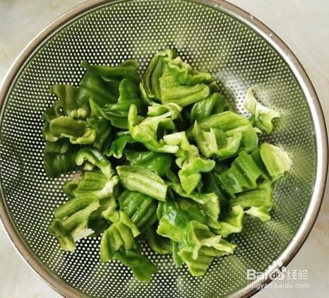 第二步,把厚皮大辣椒清洗干净,切开,去掉里面的籽,切成小块备用。