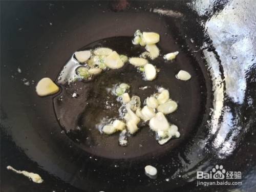 第五步,锅中再倒入少许食用油,烧热后,把姜蒜爆香。