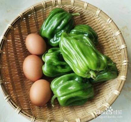 第一步,准备好我们做这道厚皮大辣椒炒蛋需要的食材:厚皮大辣椒、鸡蛋、姜蒜。