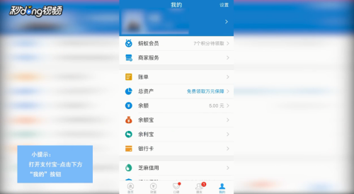 打开支付宝,点击“我的”