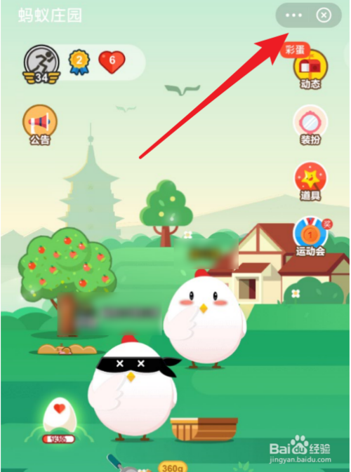 进入到蚂蚁庄园页面后,点击右上角处的【...】图标