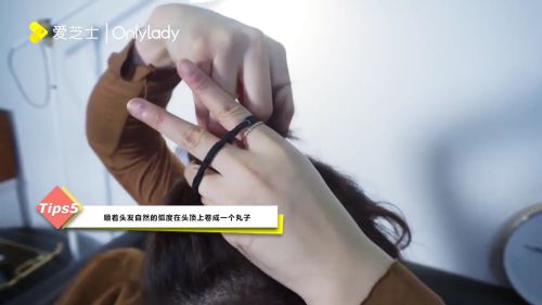 5再顺着头发自然的弧度在头顶卷成一个丸子状。