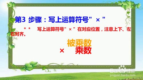 写上运算符号"×"在对应位置,注意上下、左右对齐。
