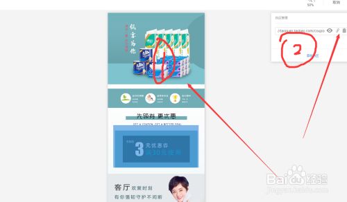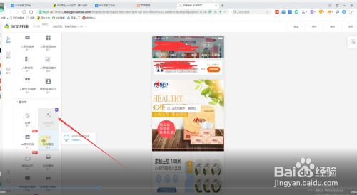 第三步:就可以装修店铺了,如图把1美颜切图鼠标拖拽到2的位置。