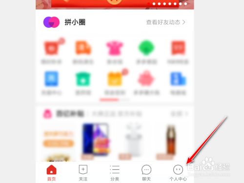 进入拼多多软件以后,点击右下角的个人中心,