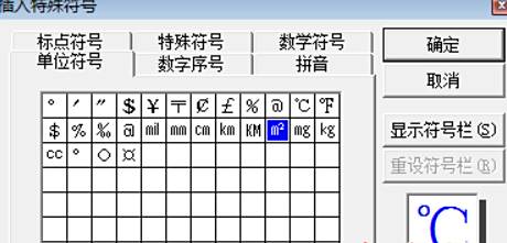 在弹出的“插入特殊符号”对话框,单击“单位符号”选项卡,选择需要插入的单位符号,单击“确定”按钮。