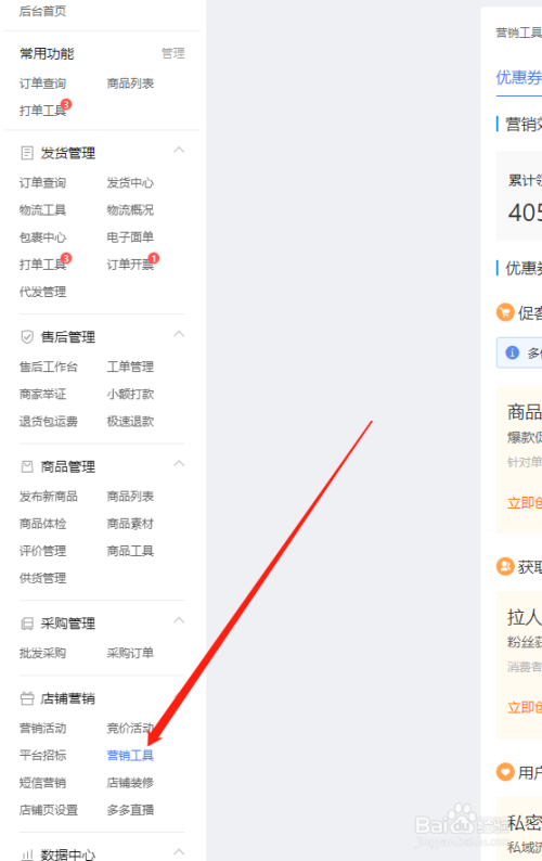 在营销工具中点击“优惠券”