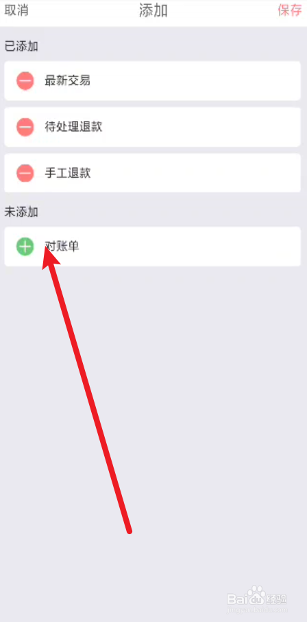 点击下方的未添加的【对账单】