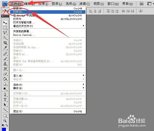 打开安装好的ps软件,并依次点击 —文件—打开—或者快捷键Ctrl+O打开自己准备好的图片。(本人使用的是ps4版本,每个软件版本制作方法流程都是一样的)