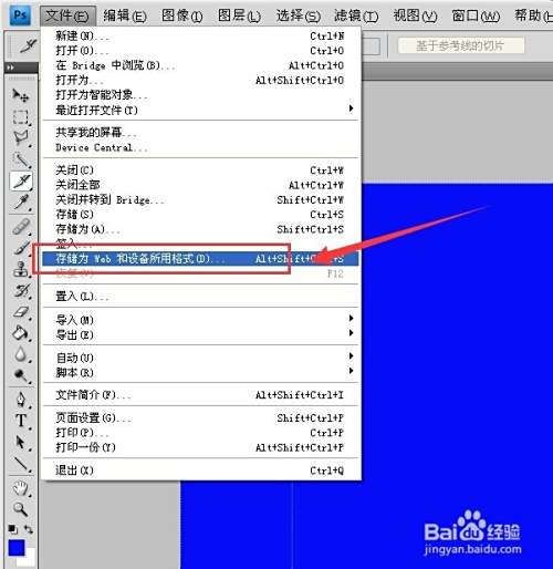 切好后就可点击文件,进行保存,点击—打开—存储为web和设备所用格式,这一步非常关键的。然后会用存储工作界面出现,刚才我把图片切成了3个部分。