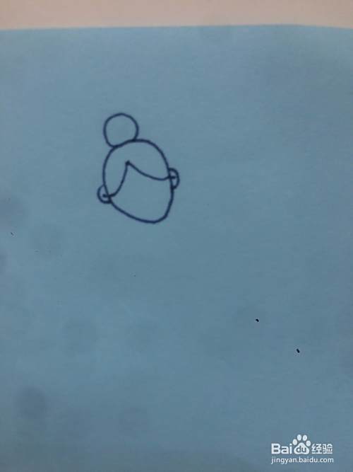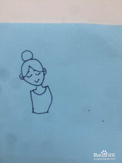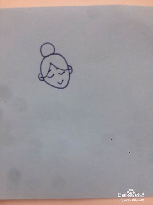 在圆内用两条弧线分开,做为刘海头发,然后在上面画一个椭圆,丸子头