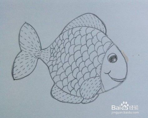 一条可爱的鱼画好了,您也画好了吗?您还可以给鱼涂上漂亮的颜色哦。