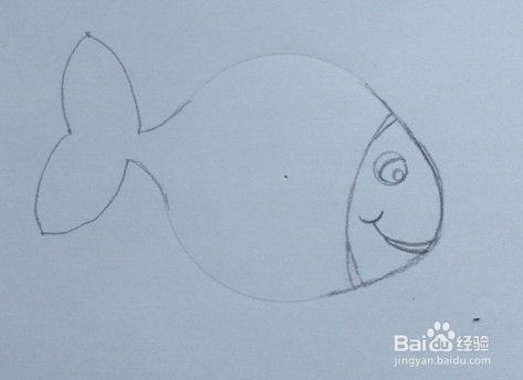 在圆的左边画鱼的尾巴。