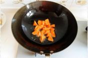 随后加入胡萝卜和土豆 。土豆和胡萝卜均切成滚刀块,在油锅里炸成金黄色 。