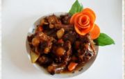 蒸完后,将牛尾、土豆、胡萝卜反扣盘中。炒锅加水淀粉勾成芡汁,浇在牛尾上即可。