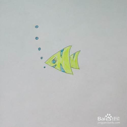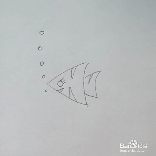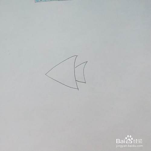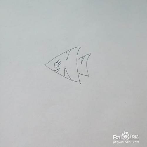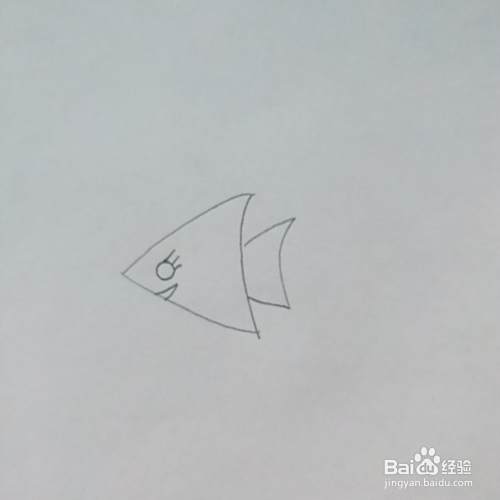 如图,首先画出小鱼儿的身体,看上去像是一个三角形。