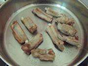 3锅中倒油炒排骨,煎到肉金黄。(不怕费事的就炸)。