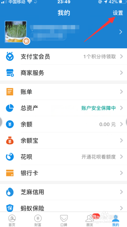 在我的页面点左上角的【设置】图标。