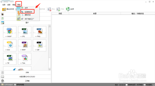 1.首先在电脑上打开格式工厂软件,点击上方菜单栏中的“帮助”——“检测新版本”。