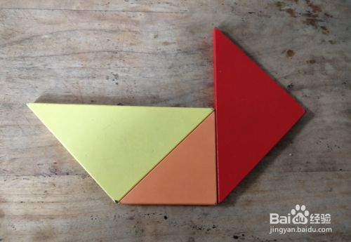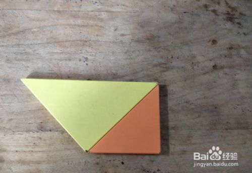 摆上黄色三角形,直角向下,右侧摆上橙色三角形挨着,如图。