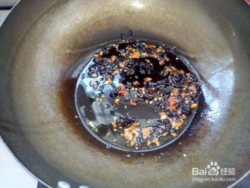 把锅烧干,加入1大勺油加热至高温,倒入豆豉和辣椒煸炒