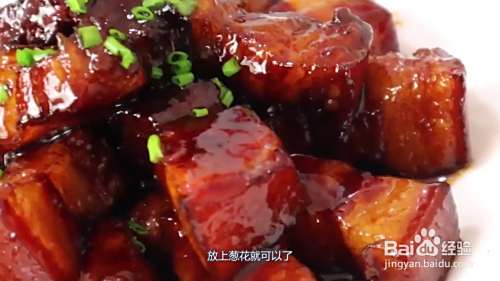 将五花肉焯水并切成块,锅烧热油将五花肉翻炒上色,加入调料和水盖上盖子炖45分钟,开大火进行收汁,并放上葱花即可。