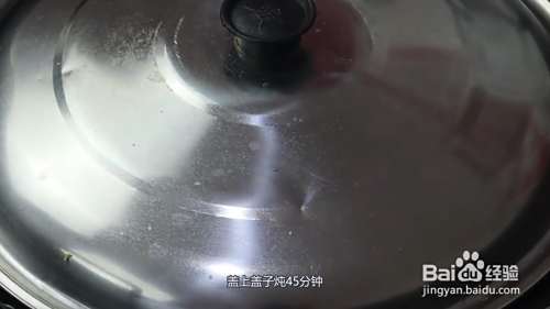上色后加入黄酒、生抽、姜片和大蒜,加入漫过猪肉的水,盖上盖子炖45分钟。