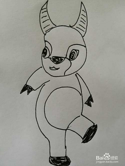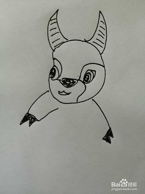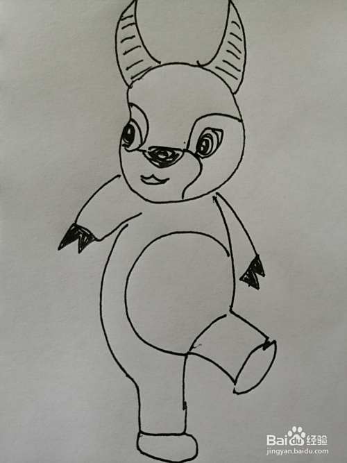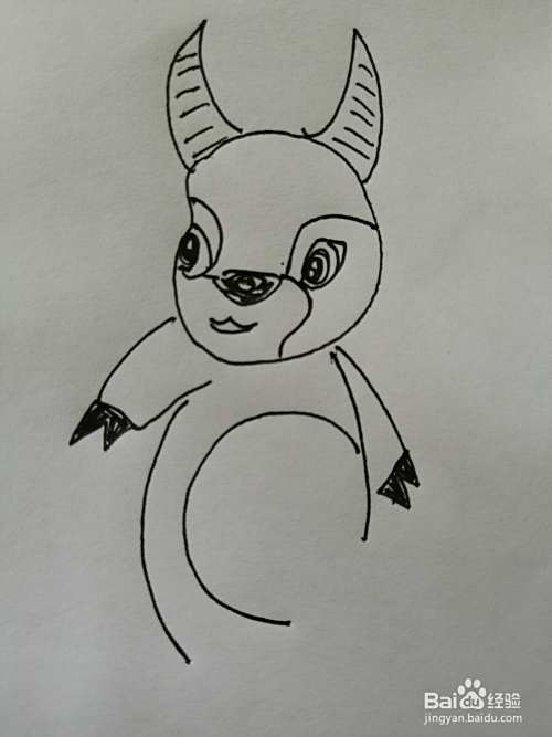 第五步,然后把可爱的小牛的两只小手和椭圆形的身体画出来,注意小手细节的画法。