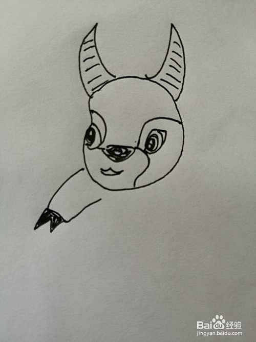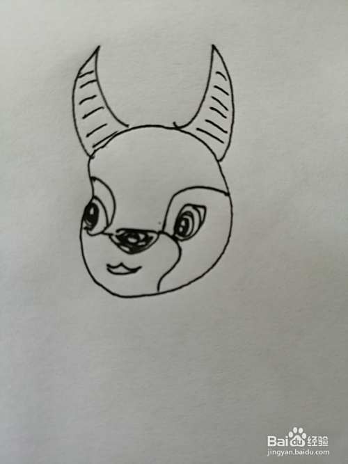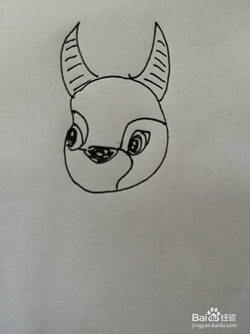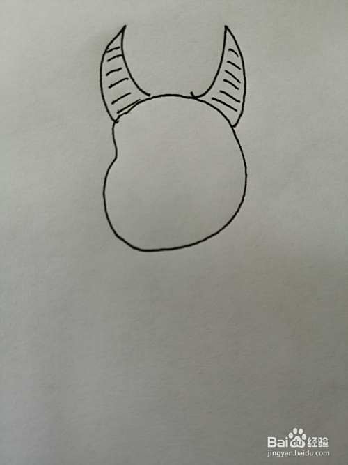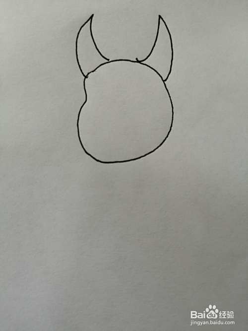 第一步,我们先画出可爱小牛的头部,在小牛的头顶上画出两只牛角。