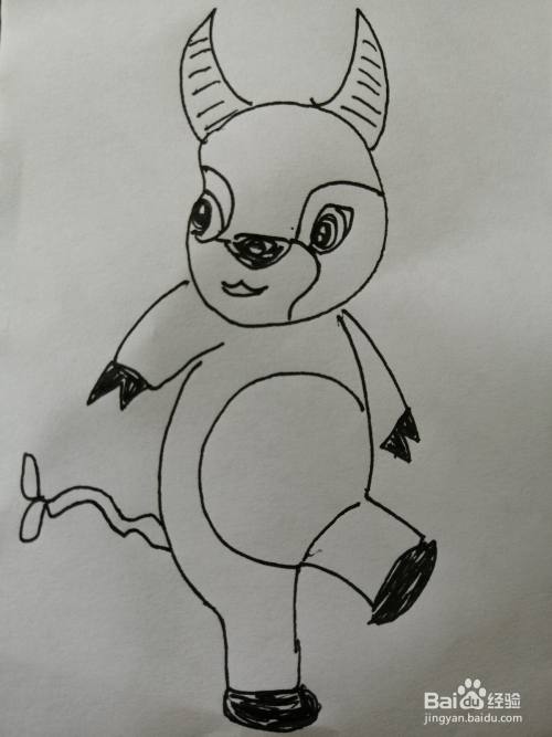 第七步,最后把可爱的小牛的小尾巴画完整,可爱的小牛就画好了。