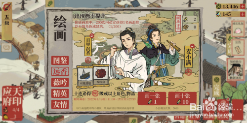 首先,打开江南百景图游戏后在游戏界面的右下方的选项中找到绘画这一项,点击进入绘画。
