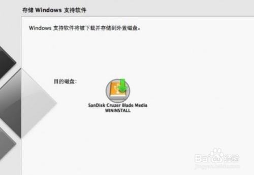 打开Boot Camp助理,点击继续,插入WIN 系统U盘,选择从Apple 下载最新的Windows 支持软件,点击继续,等系统自动下载Windows 驱动到U盘。