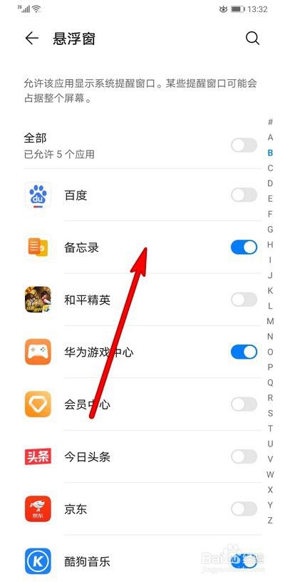 然后在这个界面选择需要开启悬浮窗的应用即可。