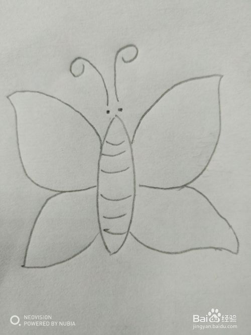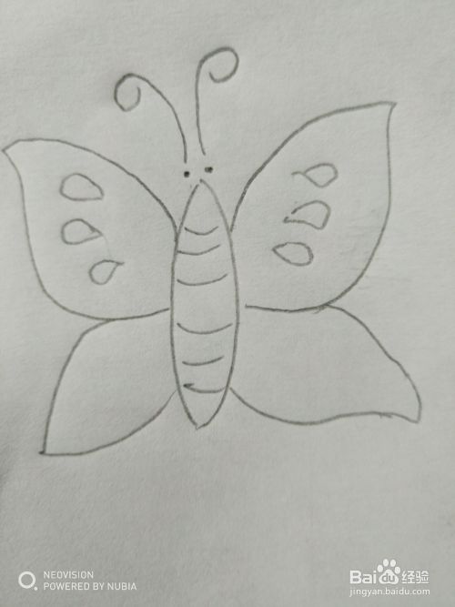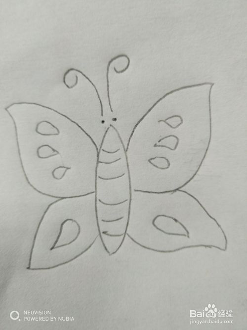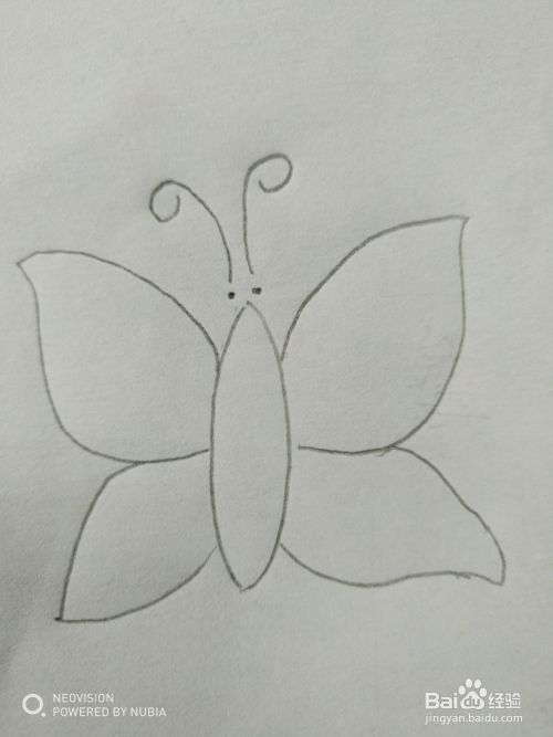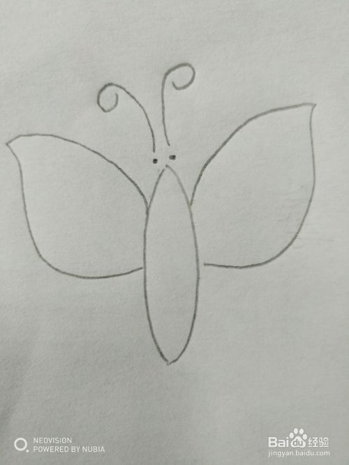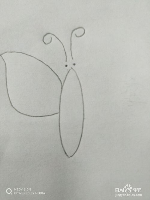 第三步,画出小蝴蝶的上面的翅膀部分。