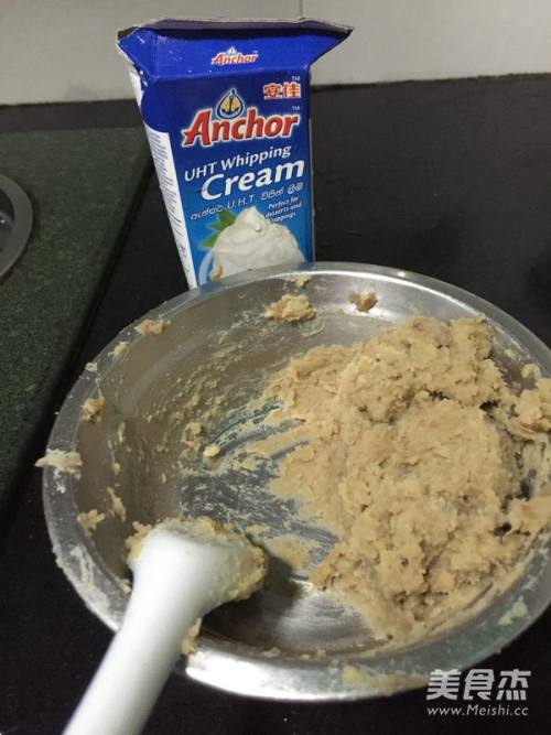 2加入淡奶油、绵白糖搅拌均匀