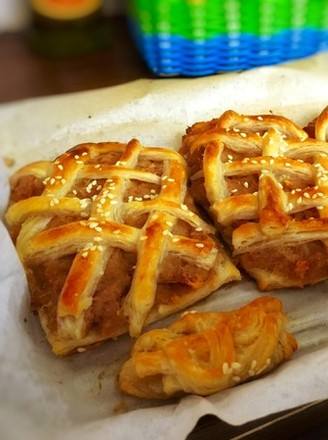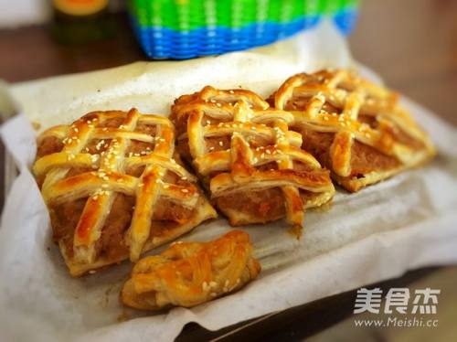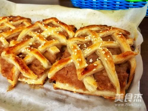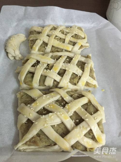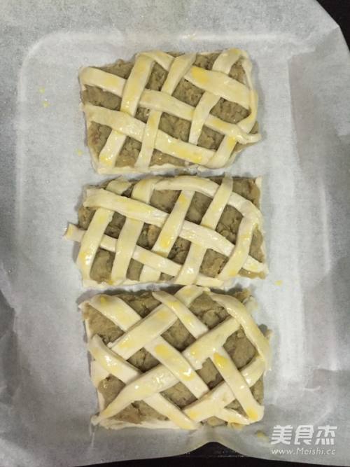 7多余的皮切成条,编织在馅料上。