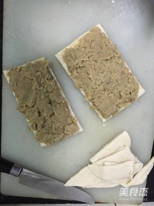 6均匀抹上红薯馅料。