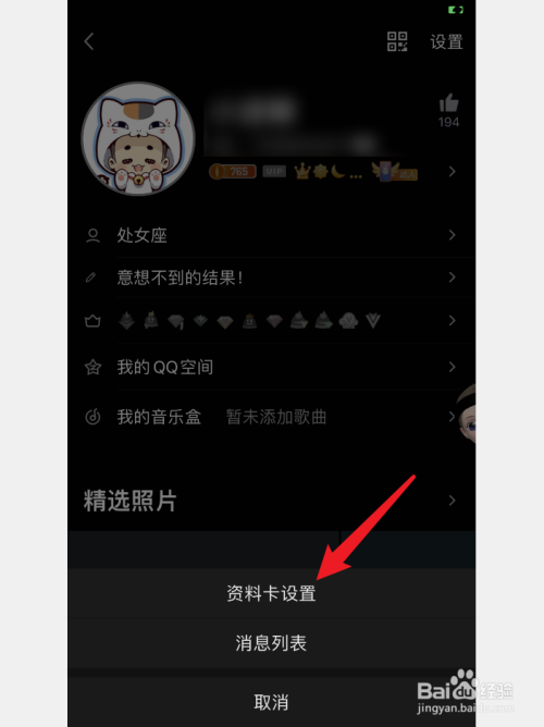 点击【资料卡设置】选项。