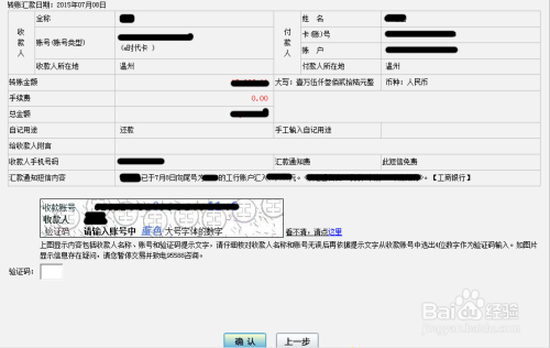 接着就是确认一下汇款信息是否正确,如果正确的话在最下面的验证码里输入验证码框里的提示,如输入蓝色数字,最后点确认。