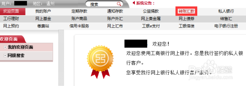 今天跟大家分享一下如何通过工商银行网上银行进行同行(工商银行)内的转账业务。